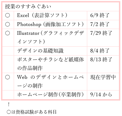 4月23日に修了したWeb&デザイン科の就職報告がまとまりました。終了3ヶ月就職率は68%、雇用保険適用就職率は64%です。それぞれが自分の生活にあった働き方を真剣に模索した結果です。厳しい社会情勢の中、ほんとうによくがんばったと思います。就職報告のなかに「就職したことはゴールではなくスタートなので、これからががんばりどころです」という報告もあり、こころから皆さんの活躍を応援したいと思います。